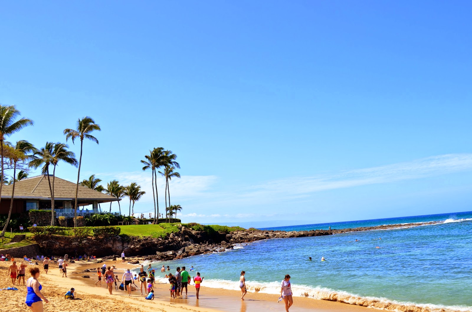head to black rock beach at the sheraton hotel in whalers village. there's tons of beach space and it has a great sandy bottom for swimming. if you want to snorkel, swim out to the rocks, it's a great place to see some beautiful fish and maybe a turtle or too! if you're really feeling adventurous, join the other thrill seekers and jump off the rocks!